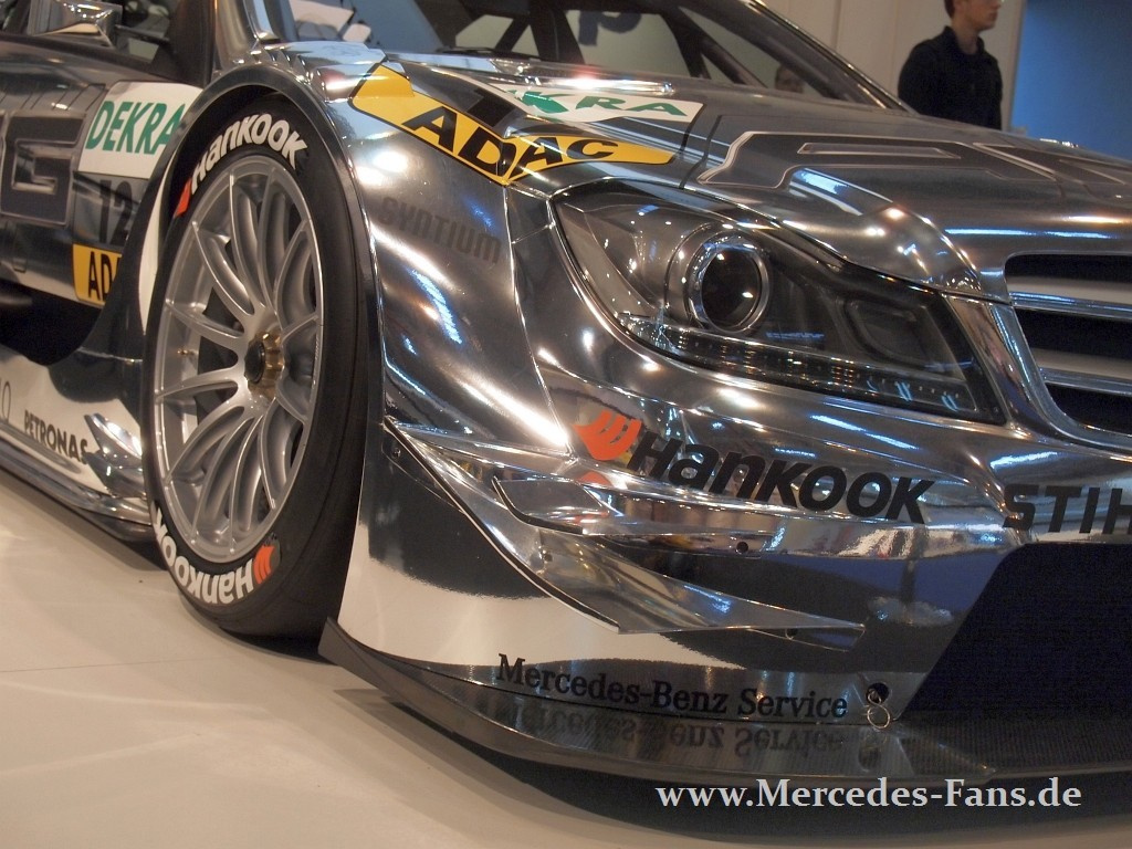Nachdem im letzten Jahr auf der ESSEN MOTOR SHOW das Thema Motorsport wieder stark vertreten war, wurden den Besuchern auch dieses Mal dazu zahlreiche Highlights geboten. So kann man in Halle 3 die neuen Rennboliden der kommenden DTM Saison 2012 bestaunen, darunter auch das DTM AMG Mercedes C-Coupé, das komplett auf Chrom getrimmt schon rein optisch ein Publikumsmagnet ist. Erstmals wurde das Fahrzeug im Rahmen der Internationalen Automobil-Ausstellung IAA in Frankfurt gezeigt. Der neue DTM-Renner, der auf dem Mercedes-Benz C-Klasse Coupé basiert, ist nach einem neuen, verbesserten Sicherheitskonzept entworfen worden. Dazu zählen ein optimiertes Monocoque aus Kohlefaser sowie ein Überrollkäfig aus hochfestem Stahl.