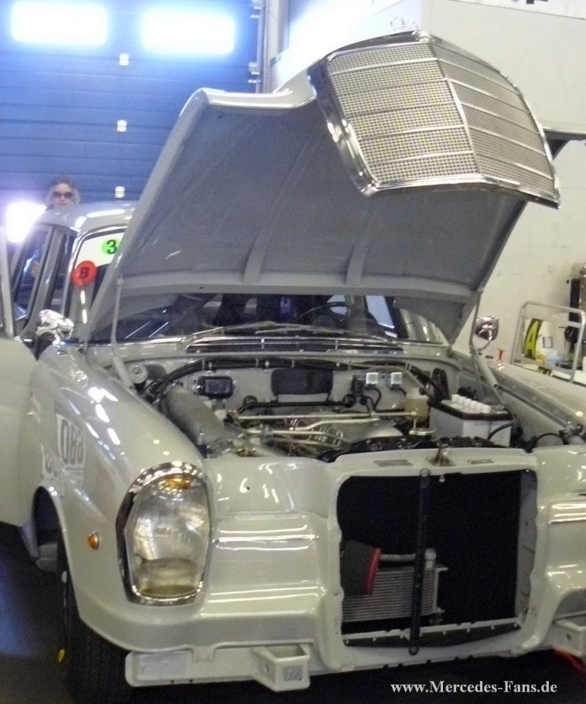 Über fünfzig Jahre sind nun fast vergangen seit eine Heckflosse, nämlich ein 220 SE mit Walter Schock, Tourenwagen-Europameister wurde. Fast fünfzig Jahre ist es her, seit Eugen Böhringer auf dem gleichen Fahrzeug Rallye-Europameister wurde. Eine Zeit, als Seriennähe das A und O des FIA Reglements war. Und genau so ein Fahrzeug stand am vergangenen Wochenende in der Box 12 des Fahrerlagers am Nürburgring und wartete auf seinen Premieren-Einsatz beim Dunlop FHR Langstrecken-Cup.