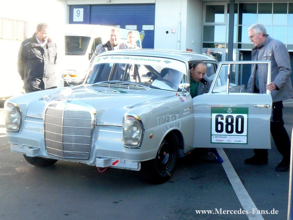 Über fünfzig Jahre sind nun fast vergangen seit eine Heckflosse, nämlich ein 220 SE mit Walter Schock, Tourenwagen-Europameister wurde. Fast fünfzig Jahre ist es her, seit Eugen Böhringer auf dem gleichen Fahrzeug Rallye-Europameister wurde. Eine Zeit, als Seriennähe das A und O des FIA Reglements war. Und genau so ein Fahrzeug stand am vergangenen Wochenende in der Box 12 des Fahrerlagers am Nürburgring und wartete auf seinen Premieren-Einsatz beim Dunlop FHR Langstrecken-Cup.
