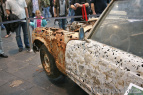 gekommen war, schaute erst ungläubig, dann schlug er entsetzt die Hand vor den Mund, zuletzt machte sich nur noch Fassungslosigkeit breit: sein Blick hangelte sich ein einem verrosteten und durchlöchertem Etwas entlang, das tatsächlich einmal eine Pagode gewesen sein ist! Die Neckar-Pagode, dort versunken vor mehr als 30 Jahren, um dann im Sommer 2006 zufällig wieder entdeckt und geborgen zu werden.