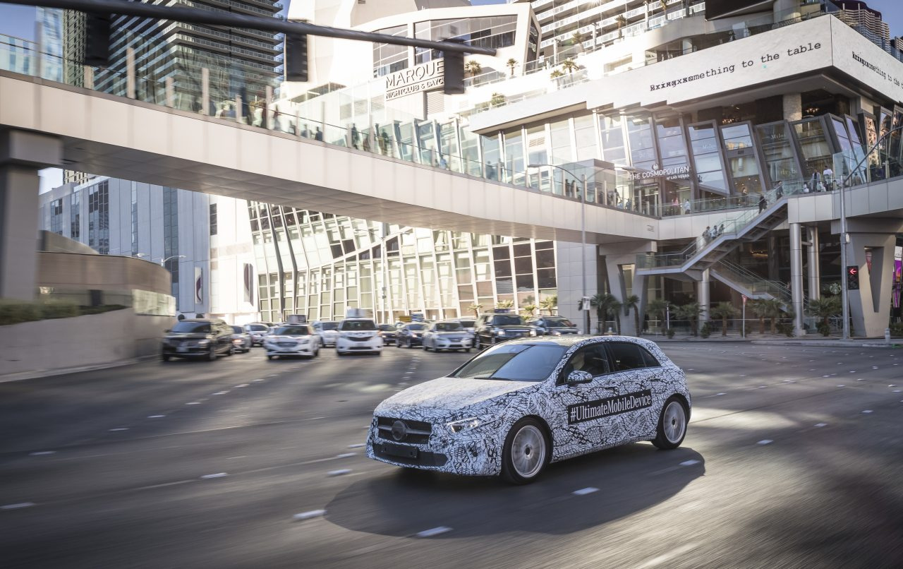 Die neue A-Klasse auf dem Weg zur CES 2018