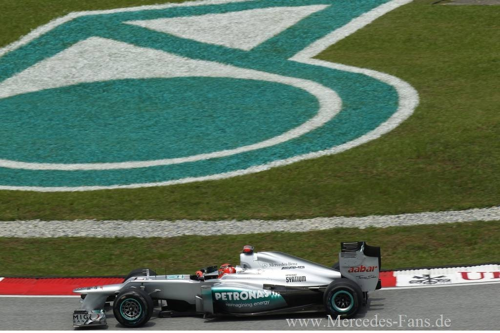 Der Grand Prix von Malaysia machte vielen Teams einen nassen Strich durch die Rechnung. Im Regenpoker von Sepang hatte Alonso auf Ferrari die besseren Karten erwischt und bei der Reifenwahl eine glückliche Hand bewiesen. Ihre Enttäuschung über das unerwartet ungünstige Abschneiden der Mercedes Silberpfeile konnten Michael Schumacher (Platz 10, nach Rang 3 im Qualifying ) und Nico Rosberg (Platz 13) kaum verbergen. Wer weiß: Wenn Altmeister Schumacher sich nicht schon in der ersten Runde durch ein unglückliches Fahrmanöver von Romain Grosjean gedreht hätte und so wichtigen Boden verlor, es wäre wohl mehr als ein WM-Punkt für ihn in Malyasia drin gewesen.