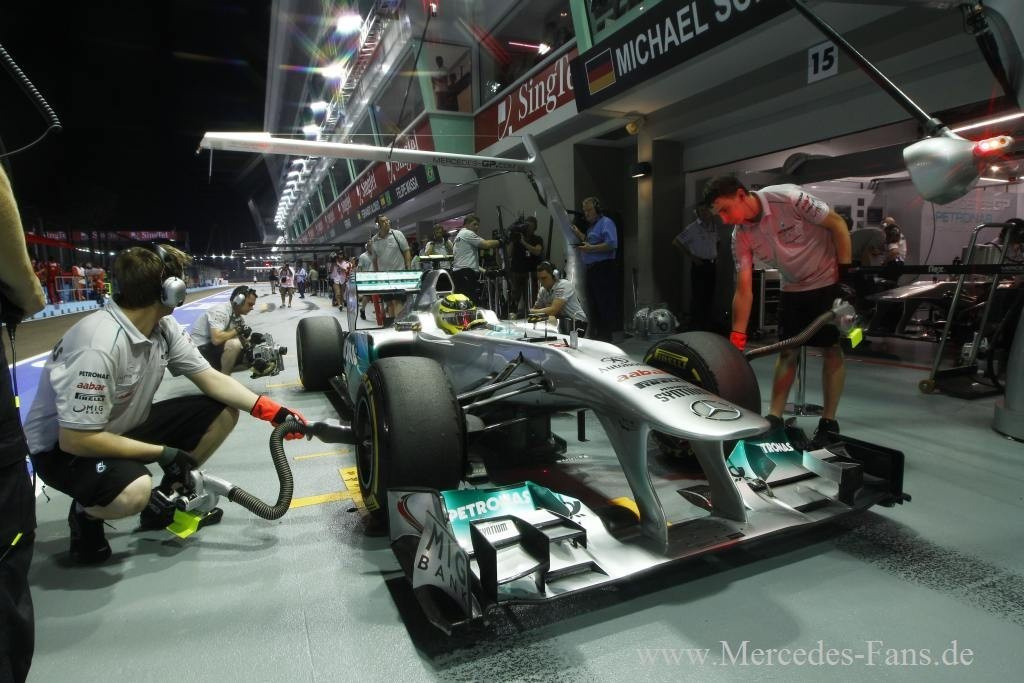 Die Formel 1 Wetmeisterschaft 2011 dürfte nach dem Grand Prix in Singapur vorzeitig entschieden sein. Sebastian Vettel fehlt nach seinem Triumph beim Nachtrennen nur noch ein Pünktchen, um sich zum zweiten mal die Formel 1 Weltmeisterschaft zu holen. Ihm gelingt, was den Mercedes-Piloten derzeit leider nicht glückt. Er siegt. Silberfpeil-Fahrer Nico Rosberg beendete den Großen Preis von Singapur auf Platz sieben. Sein Teamkollege Michael Schumacher fiel nach einer Kollision aus. Michael Schumacher lag auf Position neun, als er in Runde 28 in Kurve acht mit dem Sauber von Sergio Perez zusammenstieß.