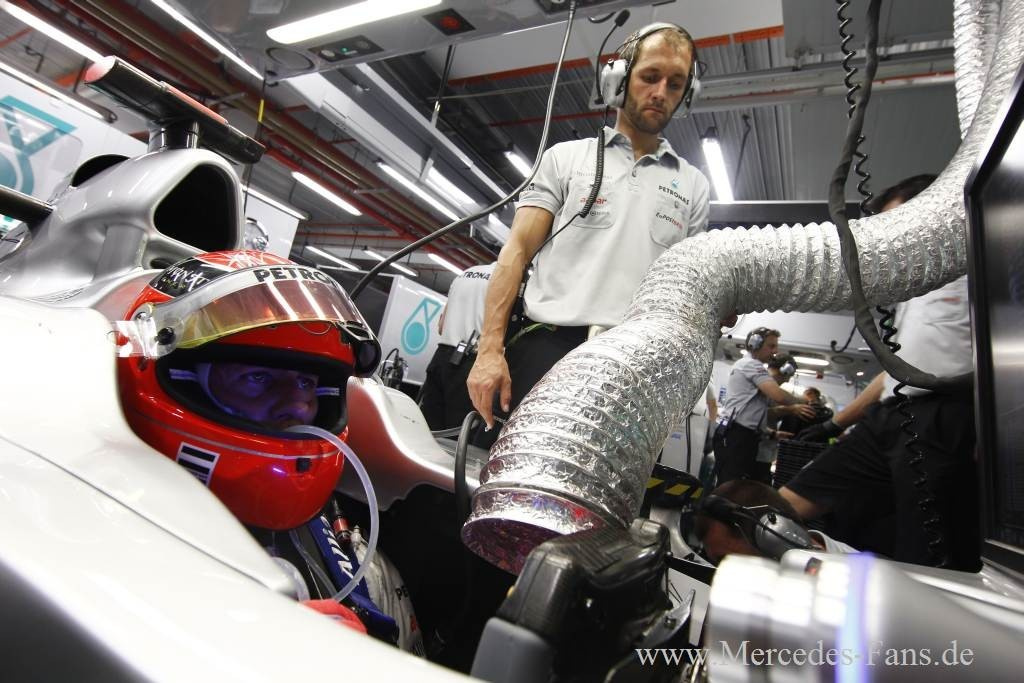 Die Formel 1 Wetmeisterschaft 2011 dürfte nach dem Grand Prix in Singapur vorzeitig entschieden sein. Sebastian Vettel fehlt nach seinem Triumph beim Nachtrennen nur noch ein Pünktchen, um sich zum zweiten mal die Formel 1 Weltmeisterschaft zu holen. Ihm gelingt, was den Mercedes-Piloten derzeit leider nicht glückt. Er siegt. Silberfpeil-Fahrer Nico Rosberg beendete den Großen Preis von Singapur auf Platz sieben. Sein Teamkollege Michael Schumacher fiel nach einer Kollision aus. Michael Schumacher lag auf Position neun, als er in Runde 28 in Kurve acht mit dem Sauber von Sergio Perez zusammenstieß.