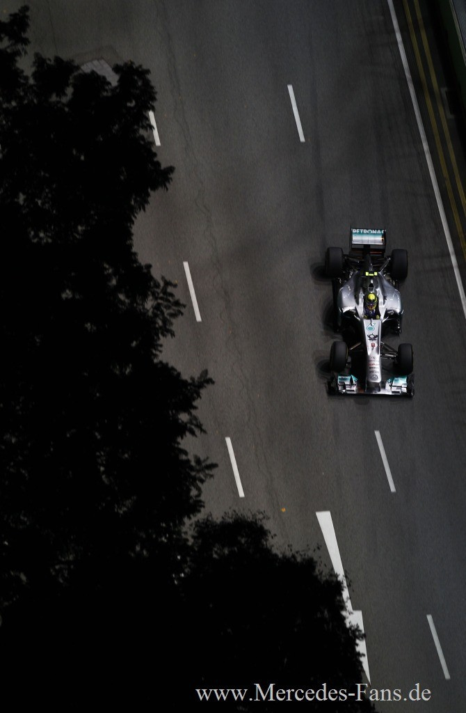 Die Formel 1 Wetmeisterschaft 2011 dürfte nach dem Grand Prix in Singapur vorzeitig entschieden sein. Sebastian Vettel fehlt nach seinem Triumph beim Nachtrennen nur noch ein Pünktchen, um sich zum zweiten mal die Formel 1 Weltmeisterschaft zu holen. Ihm gelingt, was den Mercedes-Piloten derzeit leider nicht glückt. Er siegt. Silberfpeil-Fahrer Nico Rosberg beendete den Großen Preis von Singapur auf Platz sieben. Sein Teamkollege Michael Schumacher fiel nach einer Kollision aus. Michael Schumacher lag auf Position neun, als er in Runde 28 in Kurve acht mit dem Sauber von Sergio Perez zusammenstieß.