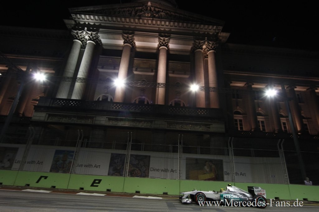 Die Formel 1 Wetmeisterschaft 2011 dürfte nach dem Grand Prix in Singapur vorzeitig entschieden sein. Sebastian Vettel fehlt nach seinem Triumph beim Nachtrennen nur noch ein Pünktchen, um sich zum zweiten mal die Formel 1 Weltmeisterschaft zu holen. Ihm gelingt, was den Mercedes-Piloten derzeit leider nicht glückt. Er siegt. Silberfpeil-Fahrer Nico Rosberg beendete den Großen Preis von Singapur auf Platz sieben. Sein Teamkollege Michael Schumacher fiel nach einer Kollision aus. Michael Schumacher lag auf Position neun, als er in Runde 28 in Kurve acht mit dem Sauber von Sergio Perez zusammenstieß.