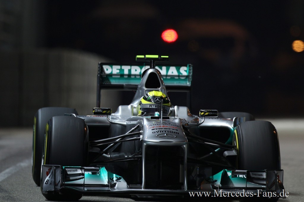 Die Formel 1 Wetmeisterschaft 2011 dürfte nach dem Grand Prix in Singapur vorzeitig entschieden sein. Sebastian Vettel fehlt nach seinem Triumph beim Nachtrennen nur noch ein Pünktchen, um sich zum zweiten mal die Formel 1 Weltmeisterschaft zu holen. Ihm gelingt, was den Mercedes-Piloten derzeit leider nicht glückt. Er siegt. Silberfpeil-Fahrer Nico Rosberg beendete den Großen Preis von Singapur auf Platz sieben. Sein Teamkollege Michael Schumacher fiel nach einer Kollision aus. Michael Schumacher lag auf Position neun, als er in Runde 28 in Kurve acht mit dem Sauber von Sergio Perez zusammenstieß.