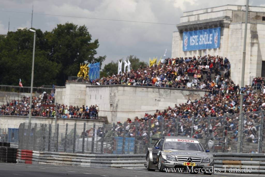 Bruno Spengler (Mercedes-Benz Bank AMG C-Klasse) gewann den fünften Saisonlauf auf dem Norisring von der Pole Position vor Jamie Green (AMG Mercedes C-Klasse). Es war Spenglers neunter Sieg in der DTM nach 2006 und 2007 der dritte auf dem fränkischen Stadtkurs - und der 14. für Mercedes-Benz auf dieser Strecke. Spengler stand zum sechsten Mal hintereinander am Norisring auf dem Podium. Seit 2003 gewann Mercedes-Benz alle neun Rennen in Nürnberg. Mit zwei Siegen in fünf Läufen übernahm Spengler wieder die Führung in der Fahrerwertung der DTM, die er schon jeweils nach den ersten drei Saisonläufen anführte. Im direkten Vergleich mit Audi steht es in 195 Rennen 107:58 für Mercedes-Benz.