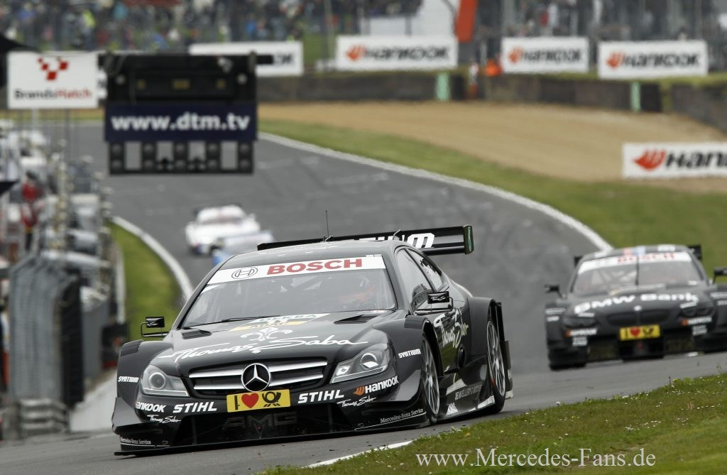 Gary Paffett (THOMAS SABO Mercedes AMG C-Coupé) gewann sein Heimrennen in Brands Hatch, den dritten Saisonlauf der DTM 2012, von der Pole Position mit fünf Sekunden Vorsprung auf Bruno Spengler (BMW). Es war Paffetts 19. Sieg in der DTM und sein erster auf dieser Strecke. Der Brite stand in seinem 84. DTM-Rennen zum 28. Mal auf dem Podium. Mit 19 Siegen und einer Siegquote von rund 23% ist Paffett der siegreichste aktive DTM-Fahrer. Für Paffett und das THOMAS SABO Mercedes AMG C-Coupé war es nach dem Auftaktsieg in Hockenheim der zweite Sieg im dritten Saisonrennen der neuen DTM-Ära.