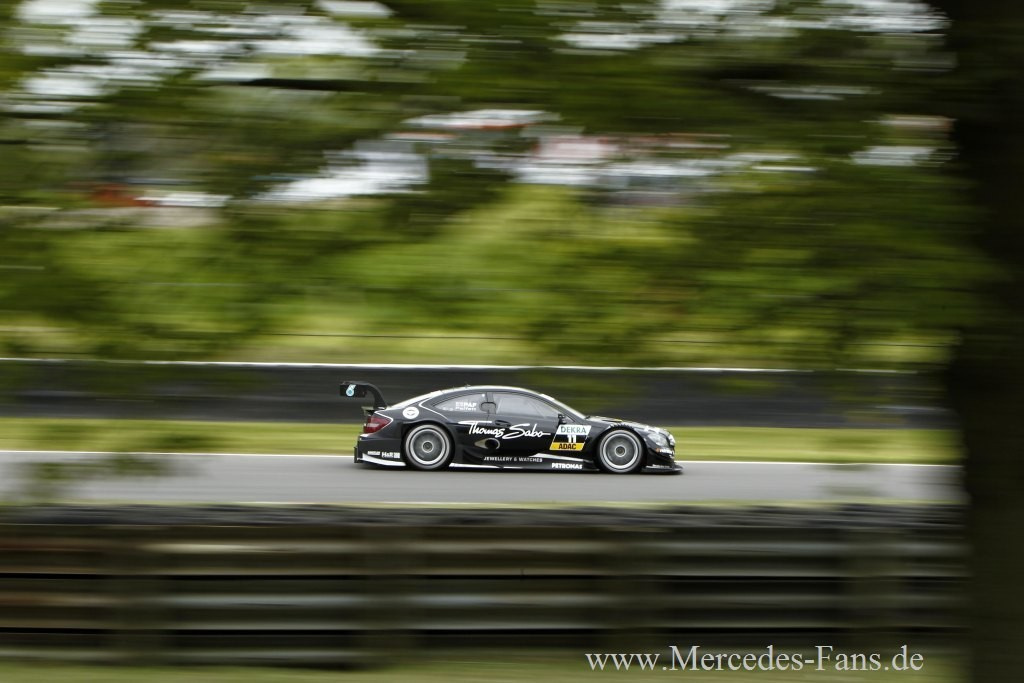 Gary Paffett (THOMAS SABO Mercedes AMG C-Coupé) gewann sein Heimrennen in Brands Hatch, den dritten Saisonlauf der DTM 2012, von der Pole Position mit fünf Sekunden Vorsprung auf Bruno Spengler (BMW). Es war Paffetts 19. Sieg in der DTM und sein erster auf dieser Strecke. Der Brite stand in seinem 84. DTM-Rennen zum 28. Mal auf dem Podium. Mit 19 Siegen und einer Siegquote von rund 23% ist Paffett der siegreichste aktive DTM-Fahrer. Für Paffett und das THOMAS SABO Mercedes AMG C-Coupé war es nach dem Auftaktsieg in Hockenheim der zweite Sieg im dritten Saisonrennen der neuen DTM-Ära.