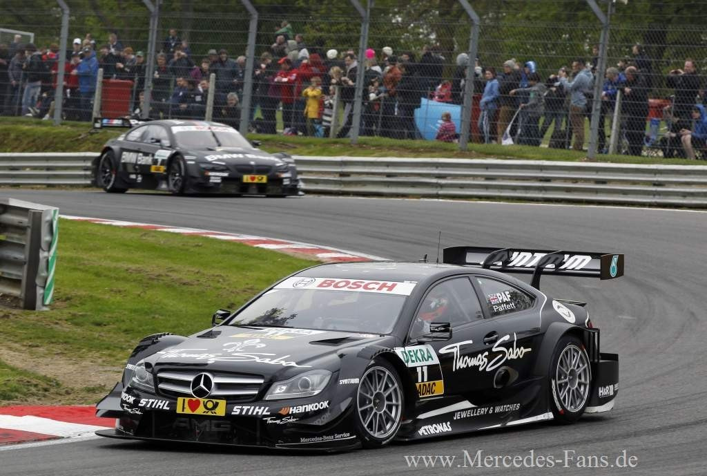 Gary Paffett (THOMAS SABO Mercedes AMG C-Coupé) gewann sein Heimrennen in Brands Hatch, den dritten Saisonlauf der DTM 2012, von der Pole Position mit fünf Sekunden Vorsprung auf Bruno Spengler (BMW). Es war Paffetts 19. Sieg in der DTM und sein erster auf dieser Strecke. Der Brite stand in seinem 84. DTM-Rennen zum 28. Mal auf dem Podium. Mit 19 Siegen und einer Siegquote von rund 23% ist Paffett der siegreichste aktive DTM-Fahrer. Für Paffett und das THOMAS SABO Mercedes AMG C-Coupé war es nach dem Auftaktsieg in Hockenheim der zweite Sieg im dritten Saisonrennen der neuen DTM-Ära.