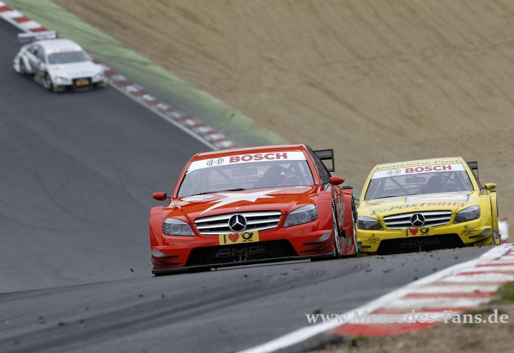 Vor insgesamt 24.000 Besuchern gelang Mercedes-Benz beim "Auswärtsspiel" in Brands Hatch im DTM-Zweikampf gegen Audi der sechste Sieg im siebten Rennen. Der wie entfesselnd fahrende Paul Di Resta ging von der Pole Position ins Rennen, das er nach 98 Runden auch als Erster beendete. Markenkollege Bruno Spengler (Mercedes-Benz Bank AMG C-Klasse) kam als Zweiter ins Ziel. Timo Scheider war auch beim siebten Saisonlauf der DTM in Brands Hatch schnellster Pilot eines Audi A4 DTM