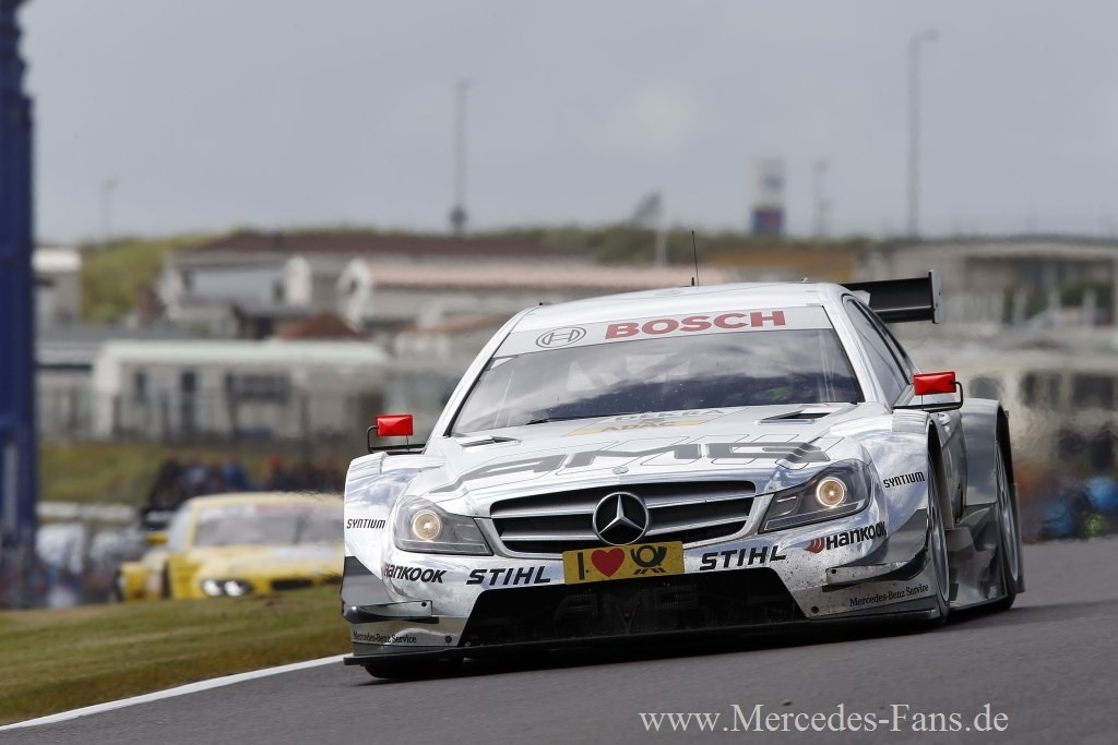 Mercedes AMG konnte in Zandvoort zwar nicht das Rennen gewinnen, und doch darf man nach dem siebten Lauf der DTM Saison 2012 eine positive Bilanz ziehen: Mercedes-Benz führt nämlich in allen drei Gesamtwertungen für Fahrer, Teams und Hersteller. Jamie Green (Mercedes AMG C-Coupé) beendete den siebten Saisonlauf der DTM in Zandvoort auf Platz vier und verbesserte sich damit in der Meisterschaftstabelle auf den zweiten Platz. Das Rennen gewann Edoardo Mortara (Audi). Tabellenführer Gary Paffett (THOMAS SABO Mercedes AMG C-Coupé) belegte nach einem schwierigen Rennen Position sieben. Von Rang acht gestartet, lag Paffett auf Platz vier, als er zu Beginn der 27. Runde von Martin Tomczyk (BMW) umgedreht wurde und bis auf Rang elf zurückfiel. In den verbleibenden 16 Runden verbesserte sich der Tabellenführer um vier Positionen bis auf Platz sieben.