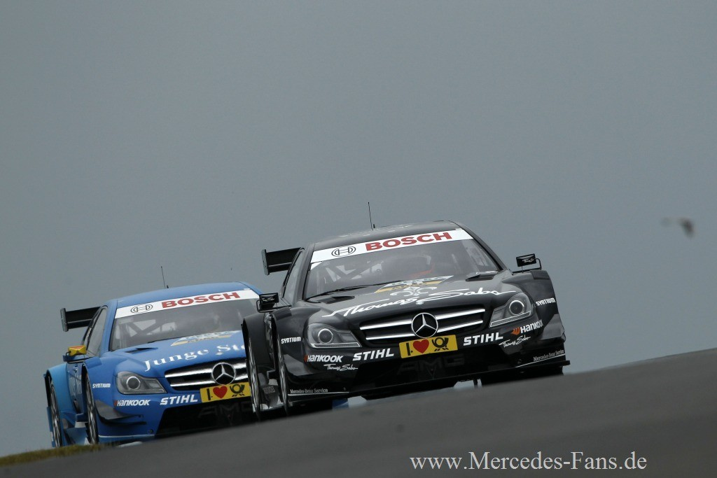 Mercedes AMG konnte in Zandvoort zwar nicht das Rennen gewinnen, und doch darf man nach dem siebten Lauf der DTM Saison 2012 eine positive Bilanz ziehen: Mercedes-Benz führt nämlich in allen drei Gesamtwertungen für Fahrer, Teams und Hersteller. Jamie Green (Mercedes AMG C-Coupé) beendete den siebten Saisonlauf der DTM in Zandvoort auf Platz vier und verbesserte sich damit in der Meisterschaftstabelle auf den zweiten Platz. Das Rennen gewann Edoardo Mortara (Audi). Tabellenführer Gary Paffett (THOMAS SABO Mercedes AMG C-Coupé) belegte nach einem schwierigen Rennen Position sieben. Von Rang acht gestartet, lag Paffett auf Platz vier, als er zu Beginn der 27. Runde von Martin Tomczyk (BMW) umgedreht wurde und bis auf Rang elf zurückfiel. In den verbleibenden 16 Runden verbesserte sich der Tabellenführer um vier Positionen bis auf Platz sieben.