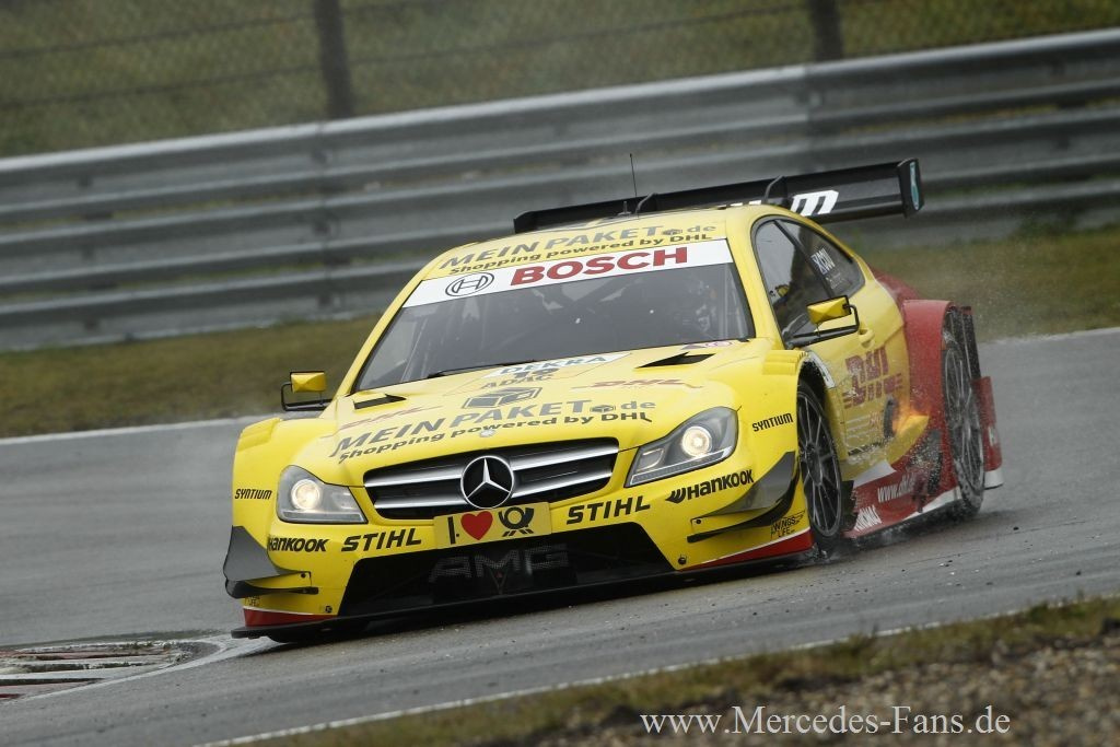 Mercedes AMG konnte in Zandvoort zwar nicht das Rennen gewinnen, und doch darf man nach dem siebten Lauf der DTM Saison 2012 eine positive Bilanz ziehen: Mercedes-Benz führt nämlich in allen drei Gesamtwertungen für Fahrer, Teams und Hersteller. Jamie Green (Mercedes AMG C-Coupé) beendete den siebten Saisonlauf der DTM in Zandvoort auf Platz vier und verbesserte sich damit in der Meisterschaftstabelle auf den zweiten Platz. Das Rennen gewann Edoardo Mortara (Audi). Tabellenführer Gary Paffett (THOMAS SABO Mercedes AMG C-Coupé) belegte nach einem schwierigen Rennen Position sieben. Von Rang acht gestartet, lag Paffett auf Platz vier, als er zu Beginn der 27. Runde von Martin Tomczyk (BMW) umgedreht wurde und bis auf Rang elf zurückfiel. In den verbleibenden 16 Runden verbesserte sich der Tabellenführer um vier Positionen bis auf Platz sieben.