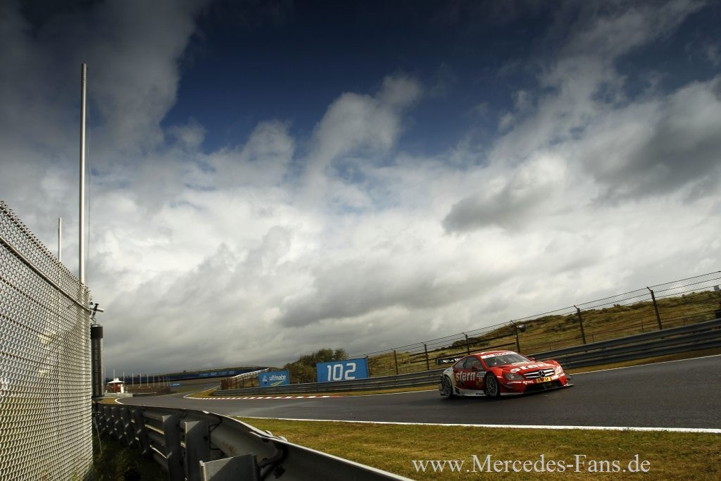 Mercedes AMG konnte in Zandvoort zwar nicht das Rennen gewinnen, und doch darf man nach dem siebten Lauf der DTM Saison 2012 eine positive Bilanz ziehen: Mercedes-Benz führt nämlich in allen drei Gesamtwertungen für Fahrer, Teams und Hersteller. Jamie Green (Mercedes AMG C-Coupé) beendete den siebten Saisonlauf der DTM in Zandvoort auf Platz vier und verbesserte sich damit in der Meisterschaftstabelle auf den zweiten Platz. Das Rennen gewann Edoardo Mortara (Audi). Tabellenführer Gary Paffett (THOMAS SABO Mercedes AMG C-Coupé) belegte nach einem schwierigen Rennen Position sieben. Von Rang acht gestartet, lag Paffett auf Platz vier, als er zu Beginn der 27. Runde von Martin Tomczyk (BMW) umgedreht wurde und bis auf Rang elf zurückfiel. In den verbleibenden 16 Runden verbesserte sich der Tabellenführer um vier Positionen bis auf Platz sieben.