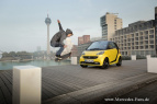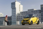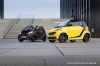 Ab April 2013 bringt smart mal wieder Farbe ins Spiel: Das neue als Coupé und Cabrio erhältliche Sondermodell smart fortwo edition cityflame setzt mit seinen Bodypanels in flame yellow ein Ausrufezeichen. tridion-Sicherheitszelle und Leichtmetallräder sind hingegen schwarz lackiert. Im Innenraum setzt sich der Kontrast fort, die exklusiven schwarzen Sitze in Lederoptik haben markante gelbe Kunstledereinsätze und sind mit gelben Ziernähten verarbeitet. Bestellt werden kann der smart fortwo edition cityflame ab sofort zu Preisen ab 14.490 Euro.
