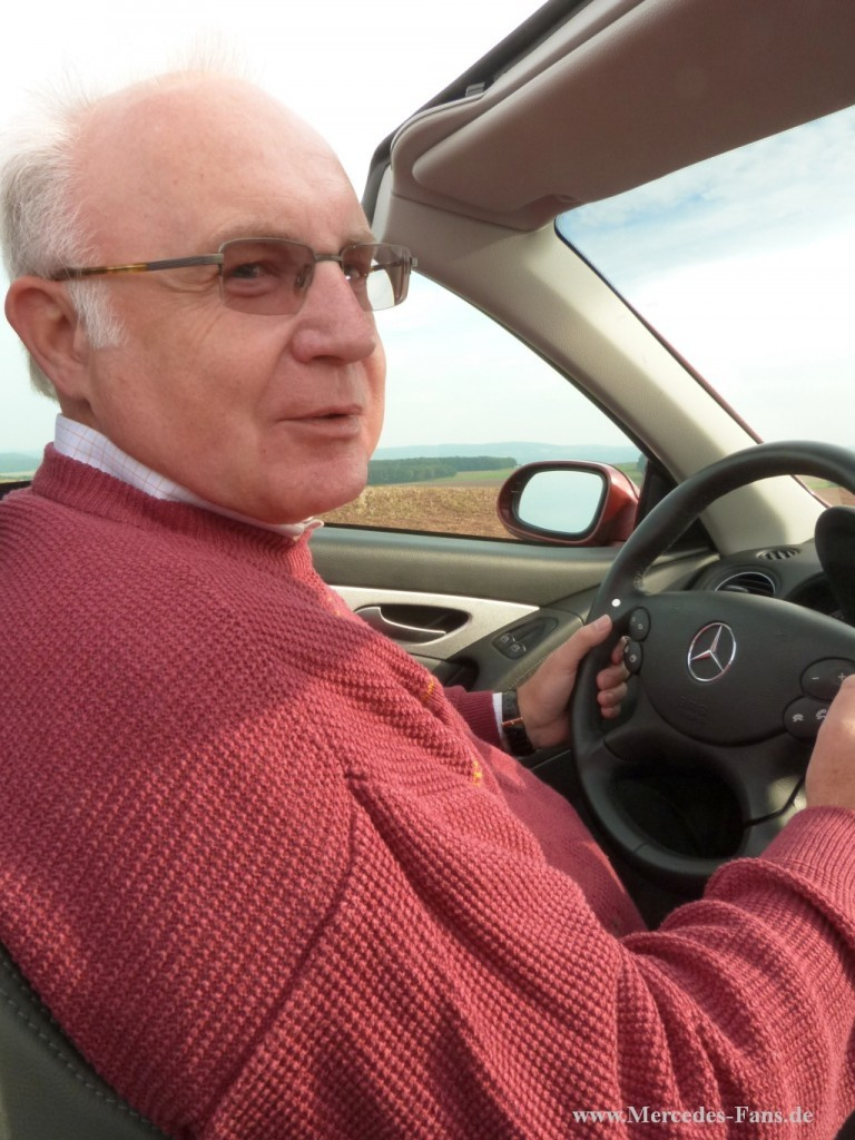 Ein AMG SL 55 in Bernsteinrot Metallic- das geht gar nicht… …so versuchte 2003 der damalige Mercedes-Benz Verkäufer Friedhelm Milas davon abzubringen, seinen Traum - Stern in dieser Farbe statt des AMG – typischen Schwarz oder Silber zu bestellen. Als Friedhelm ganz und gar nicht zu überzeugen war, half nur ein Bonitätsnachweis weiter, denn für das Auto, so der Mercedes-Mann, sei bei Nichtabnahme absolut kein Ersatzkäufer zu finden. Die Sache mit der Bonität scheint funktioniert zu haben, der Rote durfte mit dem Kennzeichen MIL AS 66 (warum nicht …55, hat Friedhelm uns nicht verraten) seine Garage in Zülpich beziehen. Unkonventionell ging´s dann für den roten Renner weiter, er wurde am 14.10.2007 auf dem Hockenheimring zum ersten und bisher einzigen roten Fahrzeug, das je für AMG an einer DTM – Fahrerparade teilgenommen hat. Dass so etwas wohl nur mit einer Sondergenehmigung machbar ist, dürfte selbstverständlich sein. Als Friedhelm 2003 seine rote Rakete kaufte, waren seit der Erstvorstellung im dritten Quartal 2001 knapp zwei Jahre und die ersten Modifikationen des bis dahin leistungs- und drehmomentstärksten Modells des R 230 vergangen. Der neu entwickelte 5,4 l (genau: 5439 ccc) V8-Motor trat zunächst mit 476 PS und einem maximalen Drehmoment von 700 Newtonmeter, die schon bei 2650 U/min. erreicht wurden, vor sein Publikum. Dabei lagen bereits 500 Newtonmeter bei 1500 U/min an. Von 0 auf 100 km/h bescheunigte das Kraftpaket in 4,7 Sekunden. Der zwischen den Zylinderblöcken eingebettete, nach dem Lysholm – Prinzip arbeitende Schraubenkompressor mit einem maximalen Ladedruck von 0,8 bar sorgte für diesen Leistungsschub Ein neu geformter Stoßfänger und Frontspoiler sowie zusätzliche Seitenschweller, 18 Zoll Felgen und eine Vierrohr- Auspuffanlage gaben dem AMG das standesgemäße Äußere. Eine Delikatesse für sich ist allein die vordere Bremsanlage. Mit 360-Millimeter- Scheiben, Achtkolben – Festsätteln und einer Belagfläche von 220 Quadratzentimetern pro Scheibe hat sie die doppelten Dimensionen wie die des parallel angebotenen 500 SL. Spiegel Online schrieb seinerzeit über das Auto: „Leichtes Schwindelgefühl macht sich breit, wenn der Top – Roadster von dem kaum merkbaren Fünfgang – Automatikgetriebe wie von einem Expander gezogen auf die 200 km/h zurast.“ Bei 250 km/h war dann, elektronisch geregelt, Schluss mit diesen Gefühlen. Bis zu Friedhelms Kauf wurde die Motorleistung noch einmal auf 500 PS angehoben und später weiter auf 517 PS gesteigert. Doch zurück zu MIL AS 66: Zunächst, nämlich bis 2006, lief das Auto im Alltagseinsatz mit allem Spaß, den solch ein „Dienstfahrzeug“ bereitet. Danach wurden die Einsätze etwas ruhiger. Inzwischen hat der Wagen 86 800 km auf der Uhr. Veranstaltungen und Fahrerlehrgänge sind die derzeitige Hauptbetätigung. Seit 2010 ist der Rote, natürlich mit Friedhelm und seiner Frau Angelika, regelmäßiger Besucher der Schönen Sterne und ist dort immer (siehe oben: Farbe!) eine der Besonderheiten auf dem Stand der AMG–Freunde Deutschland. Auch deren Jahrestreffen besuchen Friedhelm und Angelika regelmäßig. Dies geschieht in fast „dienstlicher“ Funktion, denn Friedhelm ist Schatzmeister dieser Vereinigung der Freunde schneller Sterne, die seit 2005 besteht und über 100 Mitglieder zählt. Dass das Clubmotto EINER FÜR ALLE; ALLE FÜR EINEN wirklich gelebt wird, war in den letzten Jahre in Hattingen bei den Schönen Sternen immer wieder zu fühlen. Von der Teilnahme an der DTM Fahrerparade 2007 hat sich Friedhelm eine ganz besondere Erinnerung in Form eines Ölgemäldes gegönnt: Von Ante Milas, Theologe und Meisterschüler der Düsseldorfer Kunstakademie (Friedhelm betont: kein Verwandter und ansonsten hauptsächlich mit religiösen Motiven befasst) gemalt, hängt der rote Renner an prominenter Stelle über Friedhelms Schreibtisch. Und dann wurde der Sportler in Rot 2011 auch noch Weltrekordler. Er war bei der Guinness Rekordfahrt auf dem Nürburgring dabei, als am 15.Oktober 219 Mercedes-Benz Fahrzeuge in 24,433 km (15,18 Meilen) langer Formation zum Weltrekord auf dem Nürburgring paradierten. Auch auf pädagogischem Gebiet hat sich Friedhelms Auto inzwischen bewährt. Im Westermann Schulbuch Kuhn Physik SI Ausgabe 2007 Niedersachsen/Gymnasium erscheint der Wagen auf Seite 232 im Kapitel „Arbeit und Leistung“. In Bezug auf Leistung sicherlich ein treffender Repräsentant. Mit seiner geballten Kraft und seinem für einen AMG außergewöhnlichen Auftreten ist er sicherlich auch bei den nächsten Schönen Sternen ein willkommener Gast. Jedenfalls freuen sich Friedhelm und seine Frau Angelika schon auf ein Wiedersehen unter -nicht nur- AMG-Freunden. Technikkasten Baureihe: R 230 Fahrzeugtyp: SL 55 AMG Baujahr: 2003 Motor:  AMG V8, Dreiventil – Kompressor. 5439ccm, 500 PS Getriebe: 5-Gang Automatik mit drucktastengesteuertem manuellem Fahrprogramm Bremsen: Verbundscheibenbremsen, innenbelüftet Räder: 18 “ Alu Vielspeichenfelgen Reifen:  vorn 255/40 R 18 , hinten 285/35 R 18  Fahrwerk: AMG, aktive Fahrwerkregelung, Vorderachse: Doppelquerlenker mit Schraubenfedern, Querstabilisator; Hinterachse: Mehrlenkerachse mit Schraubenfedern, Querstabilisator Karosserie: AMG Innenraum: AMG Serie