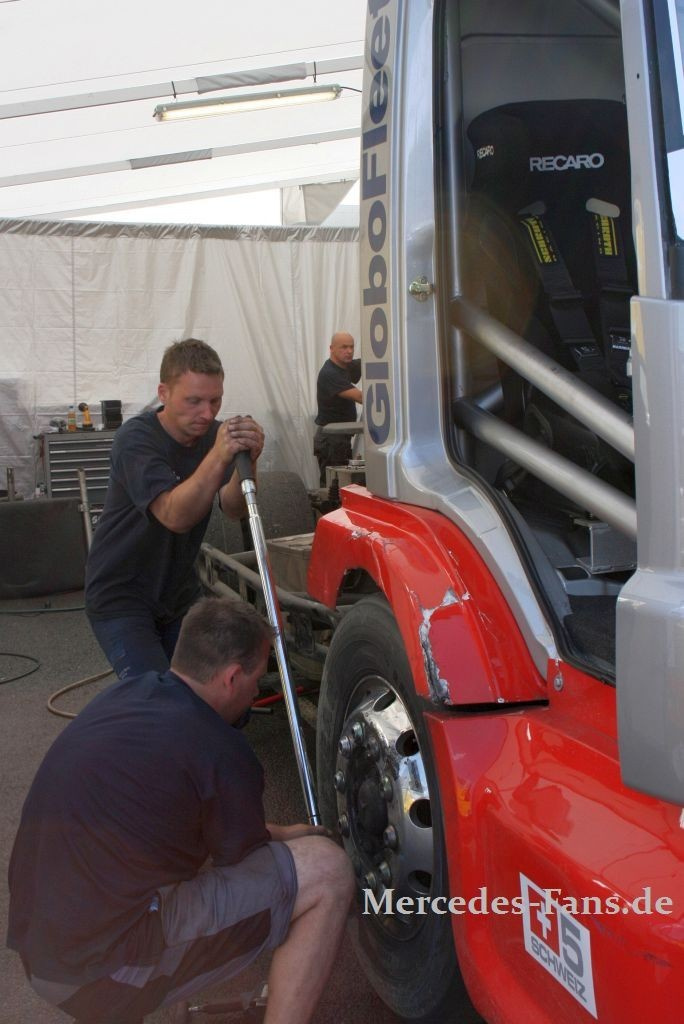 Ellen Lohr fährt die Truck Race EM auf einem Mercedes Axor und berichtet quasi direkt "vom Bock" im Online-Magazin Mercedes-Fans.de vom Renn- bzw. Trainingsgeschehen. Näher kann man also nicht dran sein, wenn die XXXL-Boliden auf die Piste gehen. Hier die Bilder aus Nogaro, wo Ellens Axor leider nicht frei von Blessuren blieb!