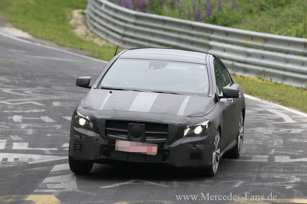 Der Mercedes-Fans.de Erlkönigjäger hat den neuen Mercedes CLA auf einer seiner Erprobungsfahrten wieder vor die Kamera bekommen. Die Bilder sind ganz frisch am Nürburgring entstanden. Noch liegt ein dichter Schleier über dem neuen Modell, aber die Tarnung ist wieder ein Stück weit geringer. Der CLA nimmt Formen an.