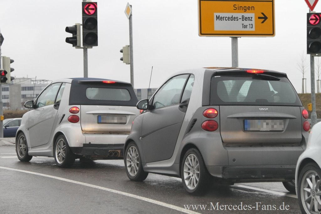 Mercedes tut es. AMG tut es. Und smart macht es ebenfalls. Auch die Daimler Tochter smart ist derzeit mit Prototypen unterwegs. Dem Mercedes-Fans.de Erlkönigkjäger gelangen jetzt die ersten Aufnahmen eines smart fortwo Facelift-Prototypen. das erprobunsgfahrzueg war freilich noch mit Tarnung unterwegs. Der Modell gepflegte smart fortwo soll noch 2012 auf den Markt kommen.