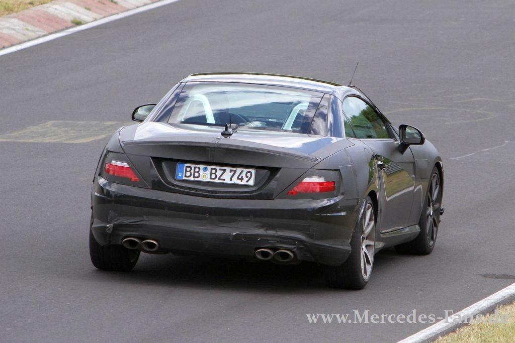 Erwischt: Unser Erlkönig-Jäger ist wieder fleißig gewesen und hat den Mercedes SLK 55 AMG gleich in mehreren varianten abgeschossen. Der Zweisitzer entblättert sich und zeigt sogar schon seinen Stern. Aber ein ganz bestimmtes Detail kaufen wir den Tarnkünstlern dann doch nicht ab!