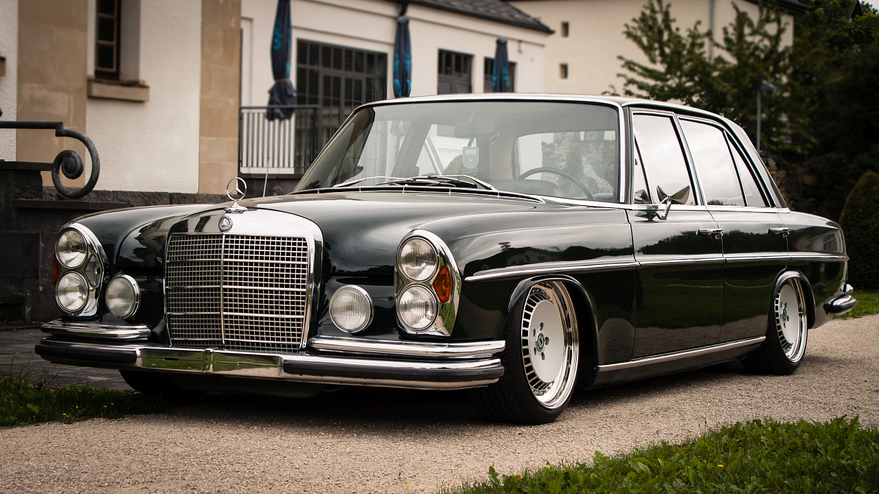 Mercedes-Benz 280SE W108 mit mehrteiligen 17" Schmidt TH-Line Felgen und einem Airride Fahrwerk