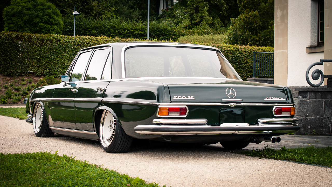 Mercedes-Benz 280SE W108 mit mehrteiligen 17" Schmidt TH-Line Felgen und einem Airride Fahrwerk