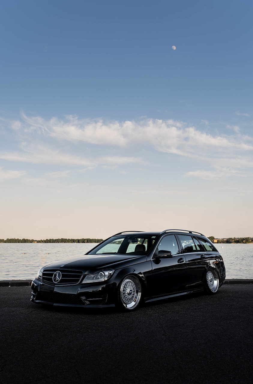 Magnetitschwarzer Mercedes Benz C 350 CDI mit 3 teiligen BBS RS 17" auf 19" Slant Lips Felgen und einem Bilstein Luftfahrwerk