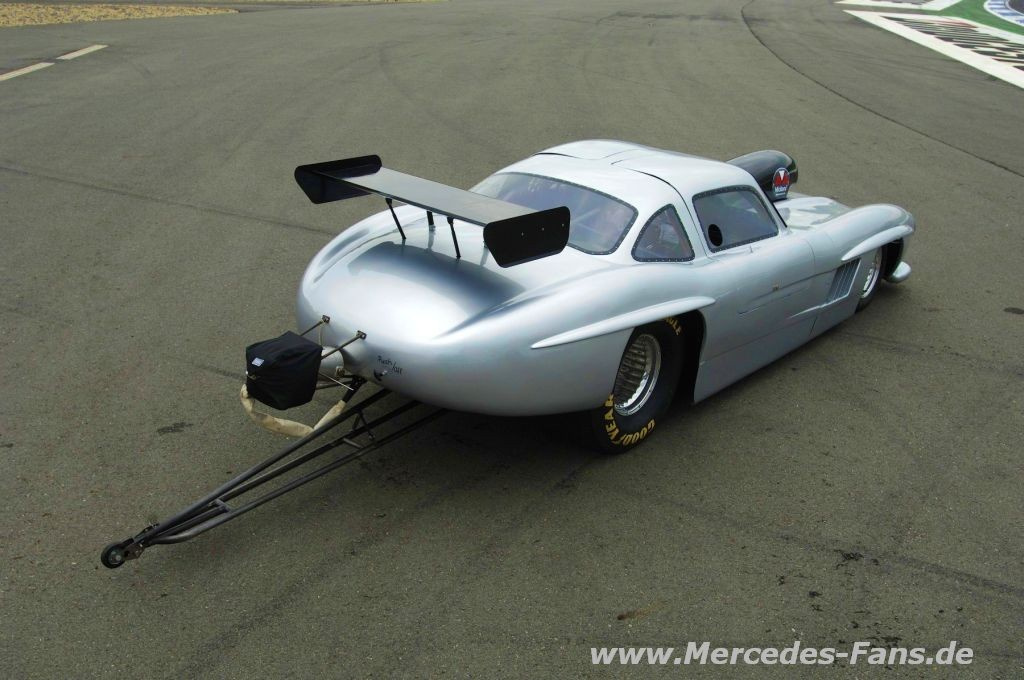 Der in der Schweiz gebaute und vom Schweizer Stefan Winter gefahrene Dragster, den Mercedes-Fans.de hier in einem Bericht bereits ausführlich vorgestellt hat, erinnert an den berühmten Mercedes 300 SL mit Flügeltüren. Unter der Fiberglas-Karosserie steckt ein 6,9-Liter-Motor, der 1050 PS leistet und den Flügeltürer in 8,10 Sekunden über die 402 m lange „Viertel-Meile“ genannte Dragsterstrecke jagt und am Ende eine Höchstgeschwindigkeit von 267 km/h erreicht. Auf der diesjährigen Essen Motor Show vom 28.11. bis 6.12. ist dieser Gullwing Dragster mal aus nächster Nähe zu bestaunen, und zwar in der Halle 10/11. Infos: www.essen-motorshow.de