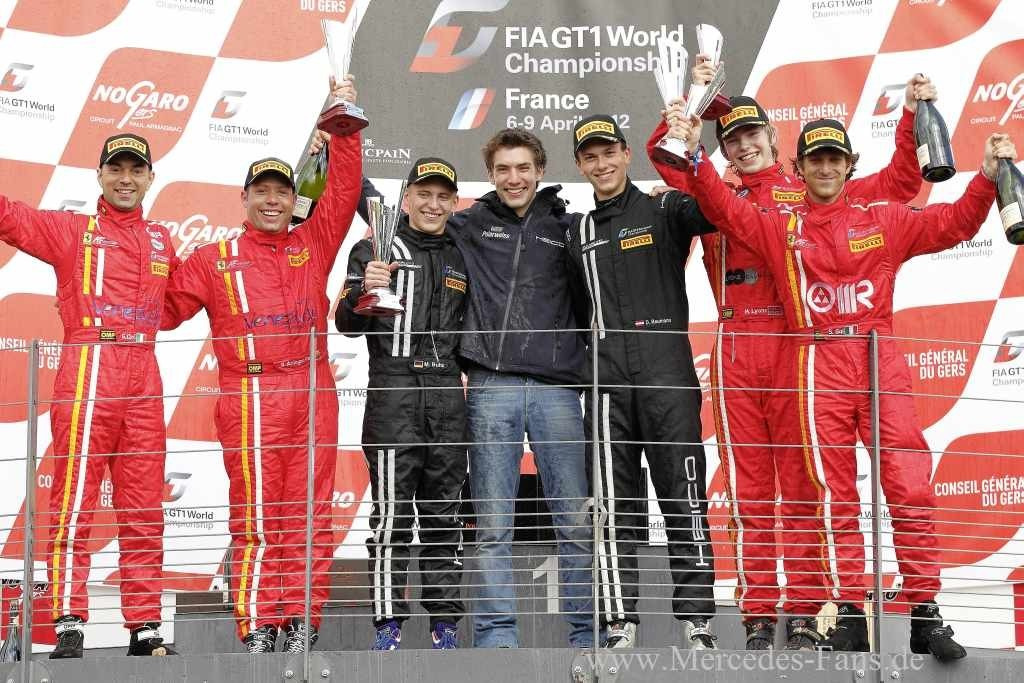 Beim traditionellen Coupe des Pâques auf dem Circuit Paul Armagnac im südwestfranzösischen Nogaro starteten die FIA GT1 Weltmeisterschaft sowie die FIA GT3 Europameisterschaft am Osterwochenende in die neue Saison. In beiden Serien gingen Kundenteams mit dem Mercedes-Benz SLS AMG GT3 an den Start. Im Hauptrennen der FIA GT1 Weltmeisterschaft belegten die beiden Flügeltürer des Teams ALL-INKL.COM Münnich Motorsport mit den Fahrerpaarungen Marc Basseng / Markus Winkelhock und Nicky Pastorelli / Thomas Jäger die Plätze drei und vier. In der FIA GT3 Europa-meisterschaft gewannen Dominik Baumann und Maximilian Buhk im Mercedes-Benz SLS AMG GT3 des HEICO-GRAVITY CHAROUZ TEAM das zweite Rennen. Tags zuvor hatten sich Baumann und Buhk mit Rang drei im ersten Lauf bereits einen Podiumsplatz gesichert.
