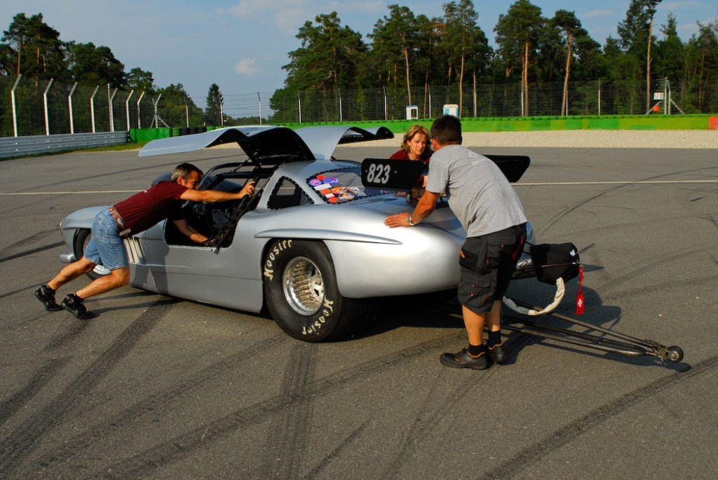 "300 SL" für die Viertelmeile: Kein SL-Flügeltürer ist stärker und schneller! Fotos: © Uwe Weber
