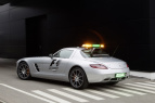 Der Flügeltürer mit dem charakteristischen Leuchtbalken und den markanten FIA- und F1-Logos auf der Aluminium-Karosserie ist seit 2010 als offizielles Safety Car in der Formel 1 aktiv. Sobald die Rennleitung einen sicheren Rennverlauf gefährdet sieht, schickt sie den SLS AMG auf die Strecke. Schlechte Witterungsverhältnisse oder Unfälle sind die Hauptursachen für einen Safety Car-Einsatz, so Bernd Mayländer, Fahrer des Official F1 Safety Cars. Wir stehen in der Boxengasse parat und bekommen den Befehl zum Rausfahren per Funk. Anschließend gilt es, das Teilnehmerfeld sicher um den Kurs zu führen, bis die gefährliche Situation entschärft wurde.