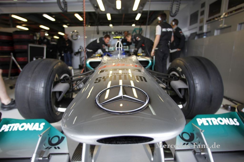 Upps, läuft es bei den Silberpfeilen doch nicht rund? Ein etwas angesäuerter Michael Schumacher diktierte am Tag vor dem Rennen dem Reporter des Aktuellen Sportstudios ins Notizbuch: "Wir stehen nicht dort, wo wir nach eigenem Anpruch stehen sollten!" Das kenne ich doch aus dem letzten Jahr, wird sich der aufmerksame Beobachter denken. Vorne Vettel und die Silberpfeile sind nicht schnell genug! Und nicht nur das: beide Mercedes-GP-Piloten sahen die Zielflagge nicht!