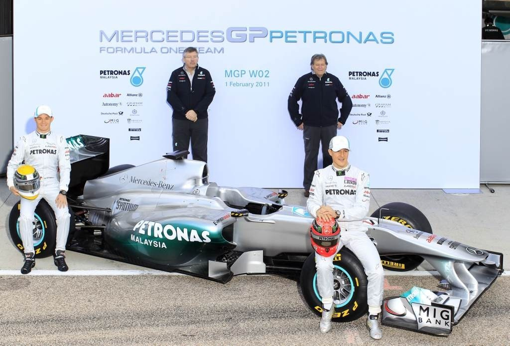 Der neue Mercedes Silberpfeil für die Formel 1 Saison 2011 zeigt sich endlich. Heute war offizielle Vorstellung des neuen Mercedes F1 Rennwagen auf der Teststrecke in Valencia. Im MGP W02 stecken rund zwölf Monate intensiver Design- und Entwicklungsarbeit. Das Auto ist der zweite Silberpfeil von MERCEDES GP PETRONAS, seitdem das Team 2009 als erstes Mercedes-Benz Werksteam seit 1955 antrat. Die Lackierung glänzt in Silber mit einem Airbrush-Effekt, der die Form des Autos betont. Die Darstellung der Partnerlogos mit einem 3D-Effekt garantiert den optisch besten und markantesten Auftritt.