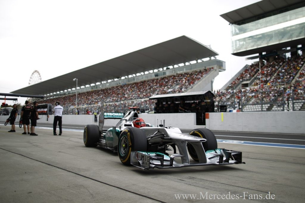 Beim Großen Preis von Japan 2012 auf dem Rennkurs in Suzuka, das Sebastian Vettel gewann, haben die Mercedes-Silberpfeile knapp die Punkte verpasst. Während Rosberg schon früh nach einer Kollision ausgeschieden war, fuhr Michael Schumacher ein engagiertes Rennen. Er startete nach einer Rückversetzung vom 23. Startplatz und konnte bereits in der Anfangsphase des Rennens viele Positionen gutmachen. Bis ins Ziel konnte sich der Rekordweltmeister im Vergleich zu seiner Startposition um zwölf Plätze verbessern. "Das Rennen hier in Japan hinterlässt bei mir etwas gemischte Gefühle - denn es ist natürlich schade, wenn man so knapp die Punkteränge verfehlt, auch wenn das Rennen insgesamt vielleicht sogar besser lief als erwartet", erklärte der Mercedes-Weerksfahrer Deutsche nach der Zieldurchfahrt.