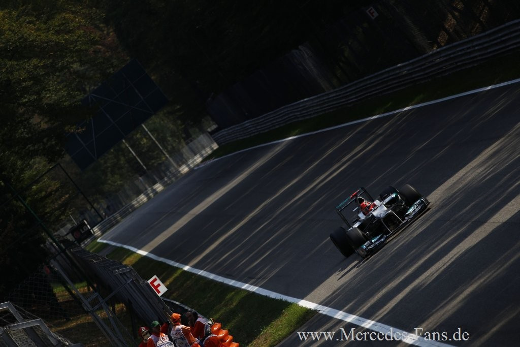 Michael Schumacher beendete den Großen Preis von Italien als Sechster u8dn war damit der beste Deutsche in diesme Rennen, dass Hamilton im McLaren-Mercedes gewann. Nico Rosberg belegte beim 13. Rennen dieser Saison den siebten Platz. Die beiden MERCEDES AMG PETRONAS Fahrer erzielten beim letzten Rennen dieser Saison auf europäischem Boden 14 Punkte für die Konstrukteursweltmeisterschaft.