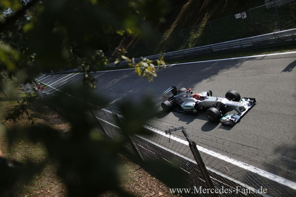 Michael Schumacher beendete den Großen Preis von Italien als Sechster u8dn war damit der beste Deutsche in diesme Rennen, dass Hamilton im McLaren-Mercedes gewann. Nico Rosberg belegte beim 13. Rennen dieser Saison den siebten Platz. Die beiden MERCEDES AMG PETRONAS Fahrer erzielten beim letzten Rennen dieser Saison auf europäischem Boden 14 Punkte für die Konstrukteursweltmeisterschaft.