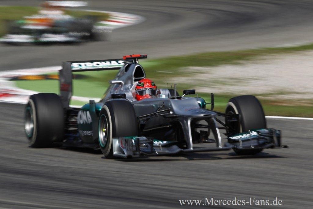 Michael Schumacher beendete den Großen Preis von Italien als Sechster u8dn war damit der beste Deutsche in diesme Rennen, dass Hamilton im McLaren-Mercedes gewann. Nico Rosberg belegte beim 13. Rennen dieser Saison den siebten Platz. Die beiden MERCEDES AMG PETRONAS Fahrer erzielten beim letzten Rennen dieser Saison auf europäischem Boden 14 Punkte für die Konstrukteursweltmeisterschaft.