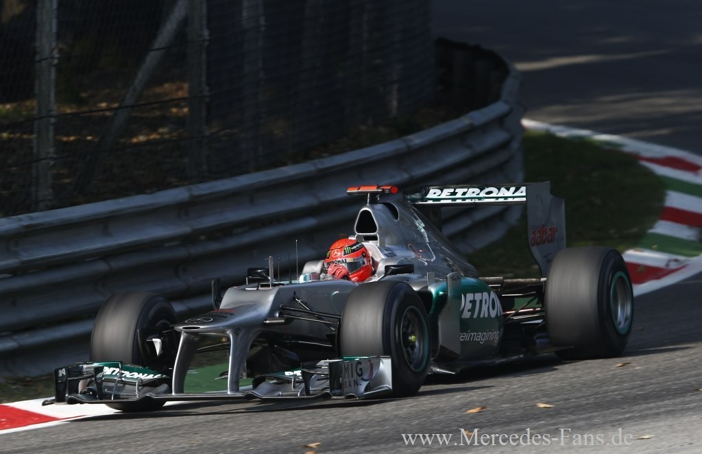 Michael Schumacher beendete den Großen Preis von Italien als Sechster u8dn war damit der beste Deutsche in diesme Rennen, dass Hamilton im McLaren-Mercedes gewann. Nico Rosberg belegte beim 13. Rennen dieser Saison den siebten Platz. Die beiden MERCEDES AMG PETRONAS Fahrer erzielten beim letzten Rennen dieser Saison auf europäischem Boden 14 Punkte für die Konstrukteursweltmeisterschaft.