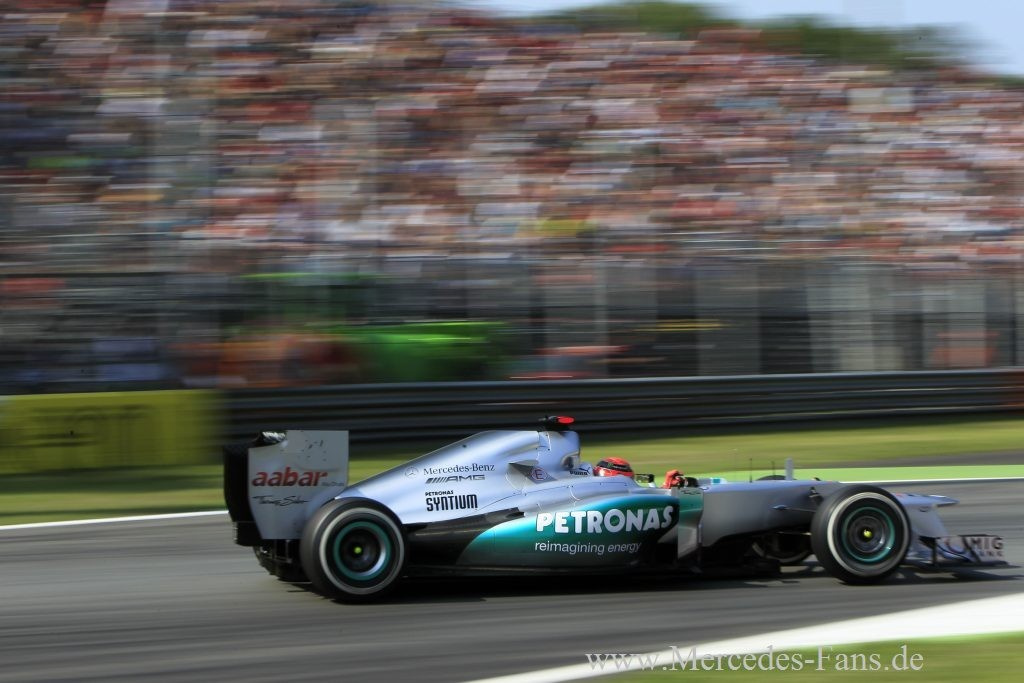 Michael Schumacher beendete den Großen Preis von Italien als Sechster u8dn war damit der beste Deutsche in diesme Rennen, dass Hamilton im McLaren-Mercedes gewann. Nico Rosberg belegte beim 13. Rennen dieser Saison den siebten Platz. Die beiden MERCEDES AMG PETRONAS Fahrer erzielten beim letzten Rennen dieser Saison auf europäischem Boden 14 Punkte für die Konstrukteursweltmeisterschaft.