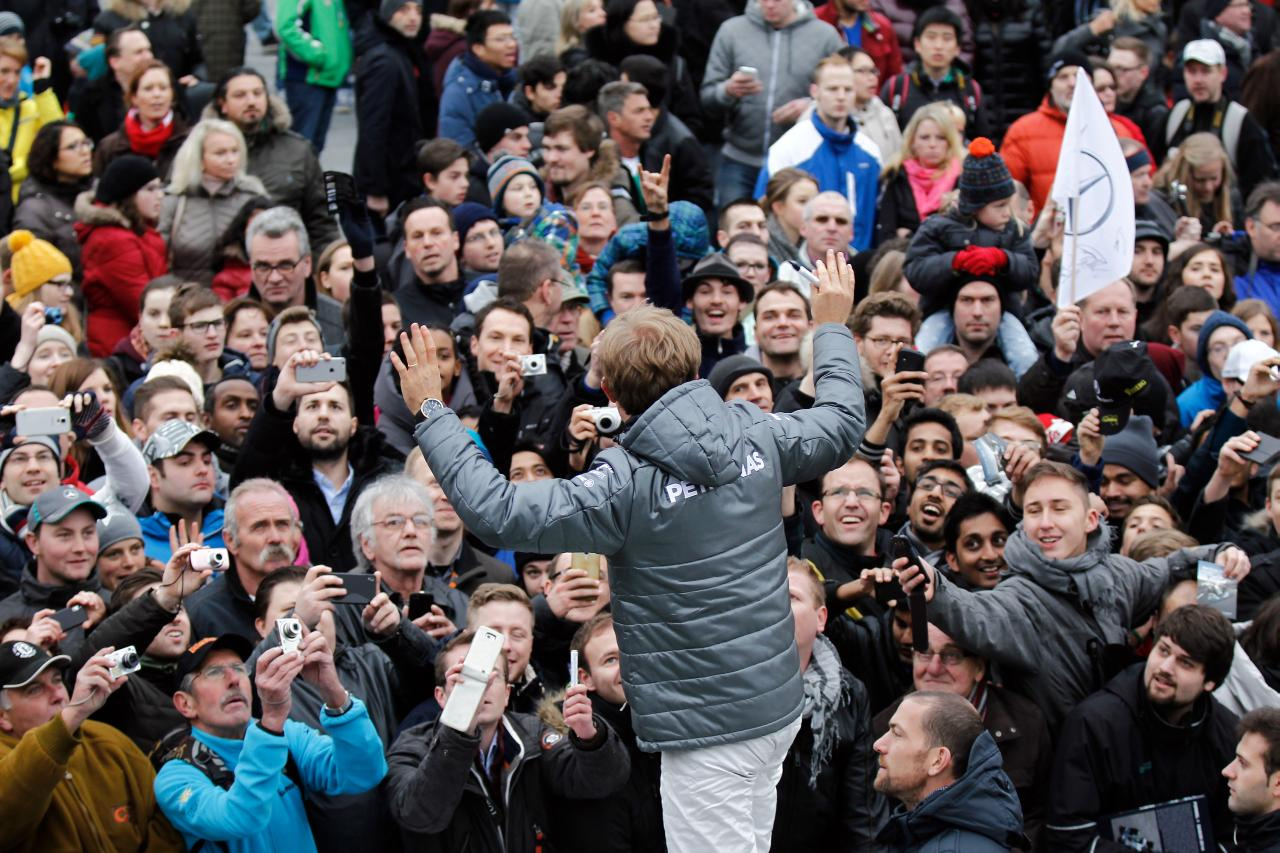Großer Bahnhof für die siegreichen Mercedes-Benz-Formel-1-Fahrer: Mercedes-Benz veranstaltete am Samstag, 29. November bei „Stars & Cars“ in Stuttgart einen spektakulären Abschluss für das Sportjahr 2014. 50.000 Besucher feierten Formel 1-Weltmeister Lewis Hamilton, seinen Teamkollegen und Vizeweltmeister Nico Rosberg sowie das Silberpfeil-Weltmeisterteam von MERCEDES AMG PETRONAS bei der Veranstaltung rund um das Mercedes-Benz Museum in Stuttgart.