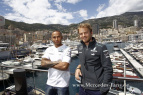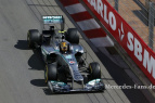 Die Häuserschlucht von Monte Carlo scheint den Silberpfeilen zu liegen. Bekanntlich trainiert ja Nico Rosberg selbst mit einem Einkaufswagen dort die ideallinie. Ist vielleicht was wahres dran, denn der Wahl-Monegasse hat am Samstag mit 1. min die schnellste Zeit in den fürstlichen Asphalt gestanzt und seinen Silberpfeil auf der Pole Position abgestellte. Neben ihm Mercedes AMG Petronas-Teamkollege Lewis Hamilton, der natürlicxh zu diesem Rennen auch seinen Hund Roscoe dabei hatte!