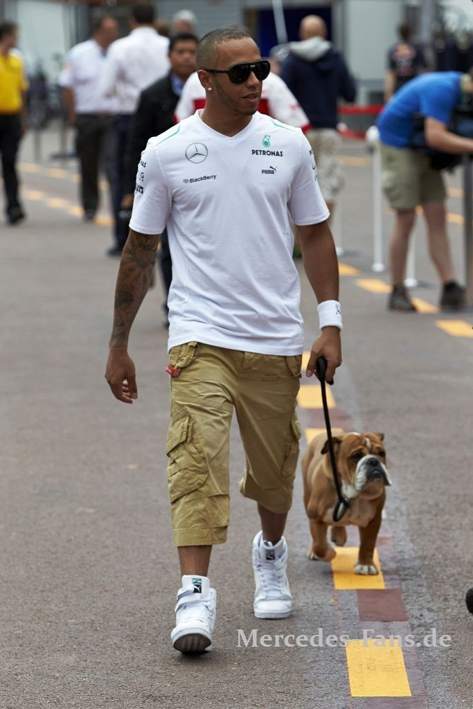 Die Häuserschlucht von Monte Carlo scheint den Silberpfeilen zu liegen. Bekanntlich trainiert ja Nico Rosberg selbst mit einem Einkaufswagen dort die ideallinie. Ist vielleicht was wahres dran, denn der Wahl-Monegasse hat am Samstag mit 1. min die schnellste Zeit in den fürstlichen Asphalt gestanzt und seinen Silberpfeil auf der Pole Position abgestellte. Neben ihm Mercedes AMG Petronas-Teamkollege Lewis Hamilton, der natürlicxh zu diesem Rennen auch seinen Hund Roscoe dabei hatte!