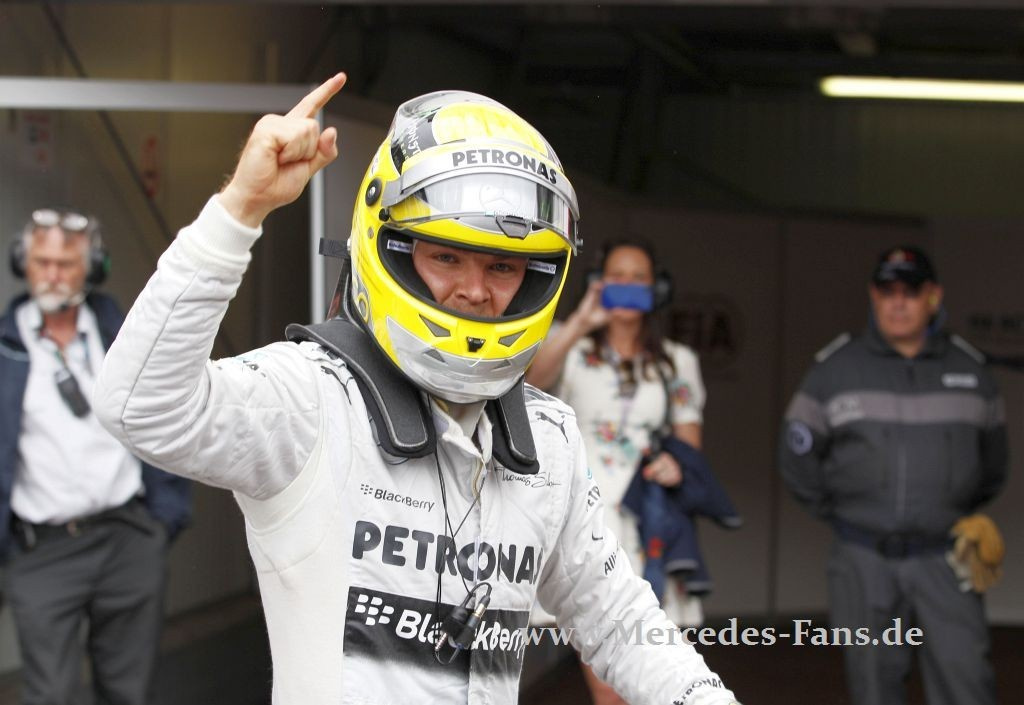 Die Häuserschlucht von Monte Carlo scheint den Silberpfeilen zu liegen. Bekanntlich trainiert ja Nico Rosberg selbst mit einem Einkaufswagen dort die ideallinie. Ist vielleicht was wahres dran, denn der Wahl-Monegasse hat am Samstag mit 1. min die schnellste Zeit in den fürstlichen Asphalt gestanzt und seinen Silberpfeil auf der Pole Position abgestellte. Neben ihm Mercedes AMG Petronas-Teamkollege Lewis Hamilton, der natürlicxh zu diesem Rennen auch seinen Hund Roscoe dabei hatte!