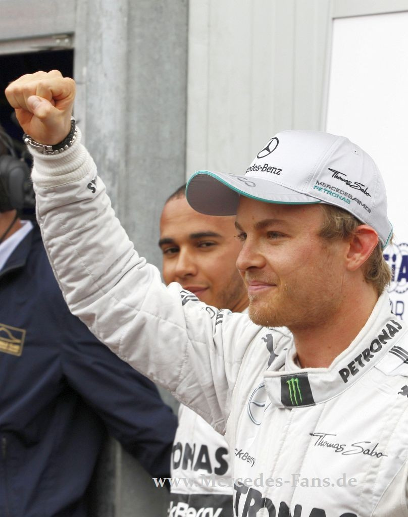 Die Häuserschlucht von Monte Carlo scheint den Silberpfeilen zu liegen. Bekanntlich trainiert ja Nico Rosberg selbst mit einem Einkaufswagen dort die ideallinie. Ist vielleicht was wahres dran, denn der Wahl-Monegasse hat am Samstag mit 1. min die schnellste Zeit in den fürstlichen Asphalt gestanzt und seinen Silberpfeil auf der Pole Position abgestellte. Neben ihm Mercedes AMG Petronas-Teamkollege Lewis Hamilton, der natürlicxh zu diesem Rennen auch seinen Hund Roscoe dabei hatte!
