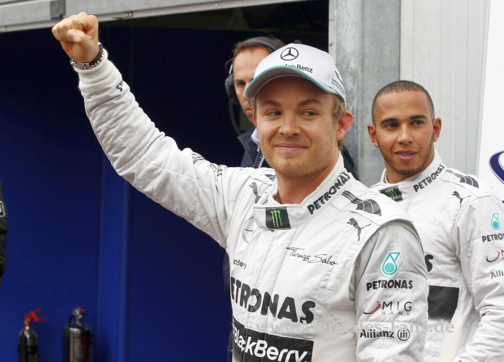 Die Häuserschlucht von Monte Carlo scheint den Silberpfeilen zu liegen. Bekanntlich trainiert ja Nico Rosberg selbst mit einem Einkaufswagen dort die ideallinie. Ist vielleicht was wahres dran, denn der Wahl-Monegasse hat am Samstag mit 1. min die schnellste Zeit in den fürstlichen Asphalt gestanzt und seinen Silberpfeil auf der Pole Position abgestellte. Neben ihm Mercedes AMG Petronas-Teamkollege Lewis Hamilton, der natürlicxh zu diesem Rennen auch seinen Hund Roscoe dabei hatte!