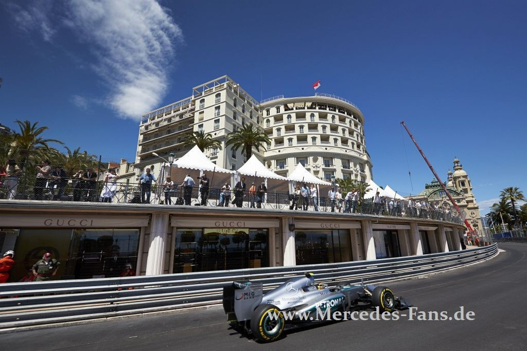Die Häuserschlucht von Monte Carlo scheint den Silberpfeilen zu liegen. Bekanntlich trainiert ja Nico Rosberg selbst mit einem Einkaufswagen dort die ideallinie. Ist vielleicht was wahres dran, denn der Wahl-Monegasse hat am Samstag mit 1. min die schnellste Zeit in den fürstlichen Asphalt gestanzt und seinen Silberpfeil auf der Pole Position abgestellte. Neben ihm Mercedes AMG Petronas-Teamkollege Lewis Hamilton, der natürlicxh zu diesem Rennen auch seinen Hund Roscoe dabei hatte!