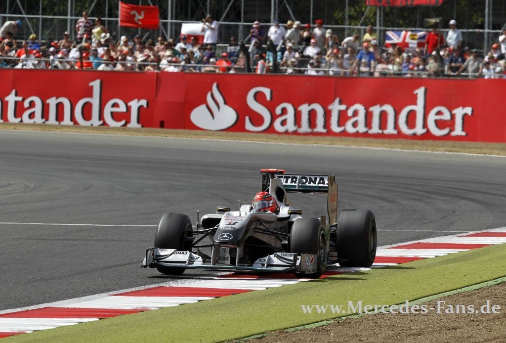 Ist die Durststrecke von Mercedes GP bald beendet? Nach zuletzt eher unbefriedigenden Ergebnissen fuhr Nico Rosberg seinen Mercedes GP in Silverstone auf den 3. Rang hinter Sieger Mark Webber und Lewis Hamilton auf McLaren-Mercedes. Die Box hatte Nico schon früh das Signal zum Angriff gegeben: "Gib Gas , lass nicht nach vorne abreißen, die Reifen halten!" Sebastian Vettel hate dagegen wieder einmal Pech. Der Polesitter kam nicht gut vom Start weg, holte sich bei einem Kontakt einen Reifenschaden und musste anschließend dem Feld hinterherjagen.