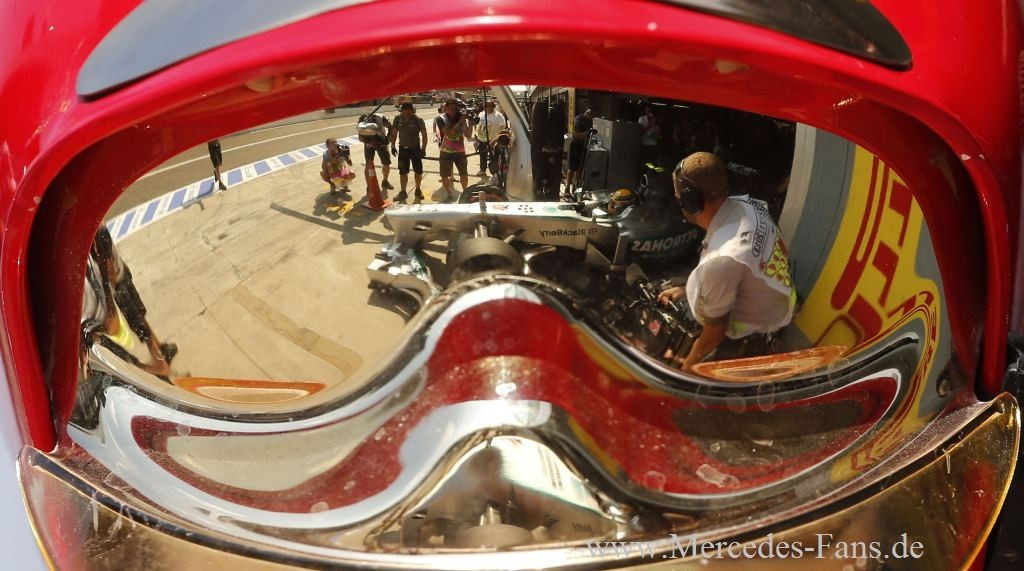 Die Mercedes-Werksfahrer Nico Rosberg und Lewis Hamilton beendeten den Großen Preis von Italien in Monza auf den Positionen sechs und neun. Hamilton hatte auf seinem ersten Satz Prime-Reifen einen schleichenden Plattfuß vorne rechts und musste in Folge dessen in Runde 13 vorzeitig an die Box kommen. Nicos Boxenstopp war mit einer Gesamtdurchfahrtszeit von 24.079 Sekunden der schnellste des Rennens. "Wir hatten heute ein sehr schnelles Auto und somit war...,